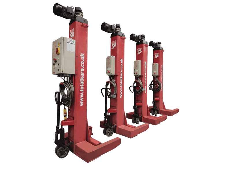 All our pre-owned mobile column lifts are steam cleaned, stripped and then repaired to the highest standards by our skilled in-house Totalkare engineers. If necessary, components such as load nuts, motor gearboxes, switches and cables will be replaced. The lifts are then load tested and inspected before an independent engineer carries out a Report of Thorough Examination to ensure they meet LOLER requirements before leaving our workshop. All our refurbished sets come with six months’ parts and labour warranty for your peace of mind.
